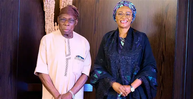 Former President Olusegun Obasanjo has paid a visit to the First Lady of Nigeria, Senator Oluremi Tinubu.